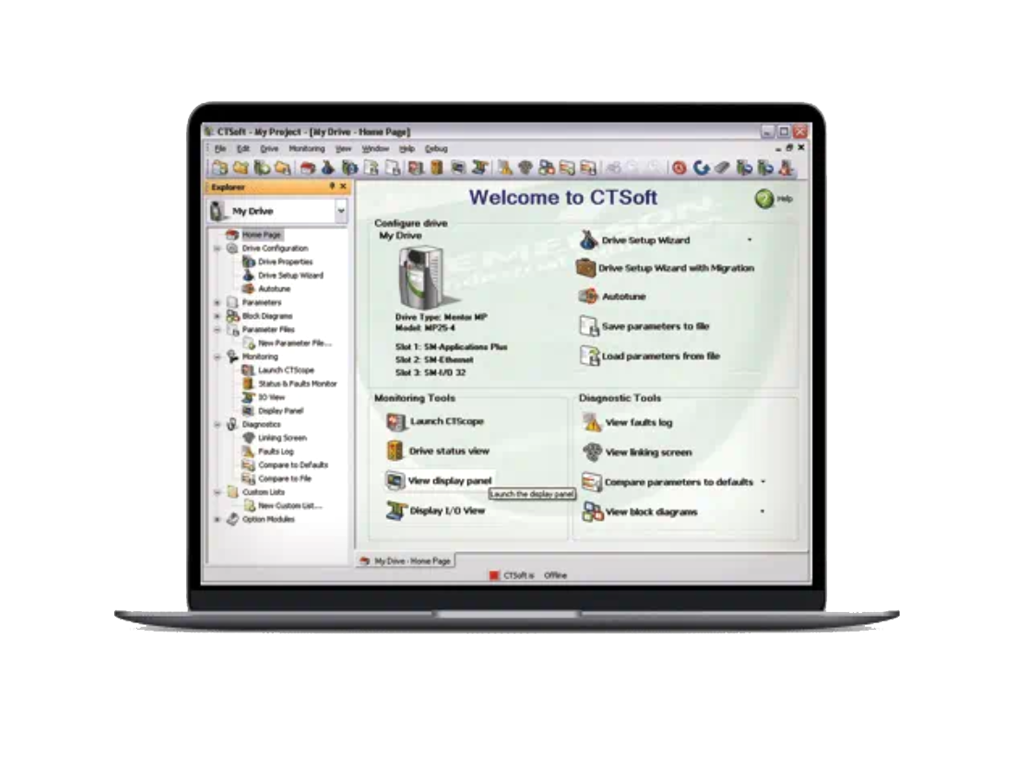 Softwarepakket voor programmeren, parameterbeheer, inregelen en diagnose.