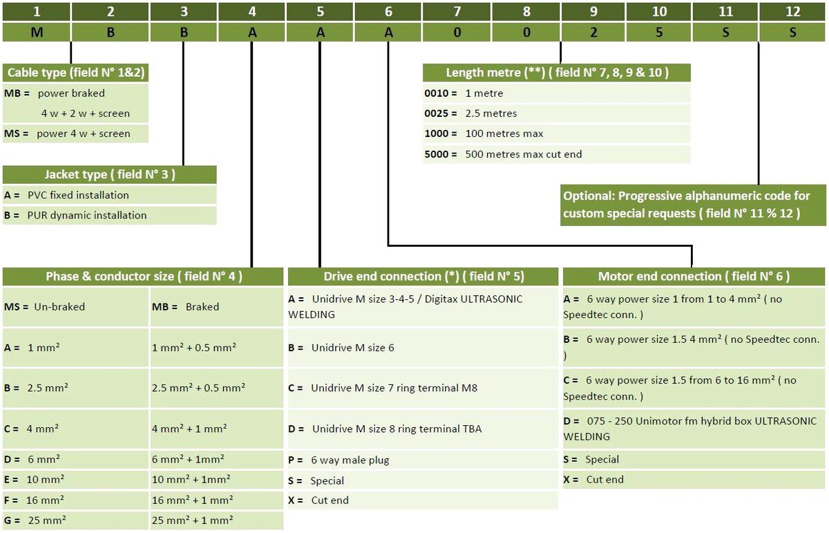 Voedingskabel Unimotor FM & HD met rem en thermistor
