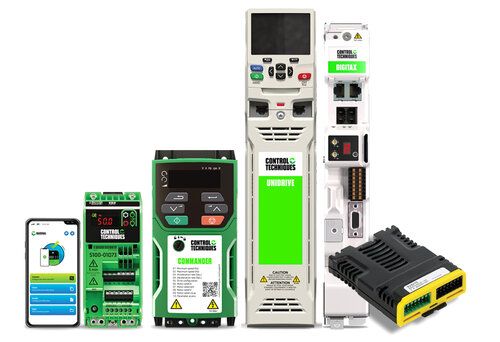 Het compacte, complete programma Control Techniques producten van Nidec Drives: CT Drives, Commander, Unidrive, Digitax.