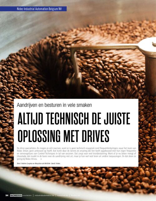 De drive specialisten. Zo mogen ze zich noemen, want er is geen technisch vraagstuk rond frequentiesturingen, waar het team van Nidec Drives geen antwoord op heeft. Dat komt door de kennis en ervaring die het heeft opgebouwd met hun eigen frequentie- en servoregelaars van Control Techniques in tal van sectoren. Dat zorgt voor veel kruisbestuiving. Want of je nu beton mengt of chocolade, dat maakt in de basis voor de aandrijving niet uit, maar je kan wel veel leren uit andere toepassingen. En dat doen ze gretig bij Nidec Drives.
