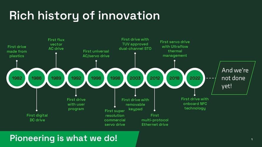 Inmiddels zijn we aardig wat jaren en generaties regelaars verder. De Unidrive is doorontwikkeld en opgevolgd door onze Unidrive M range. De Unidrive bood net als de unieke actie een mooie basis voor onze toekomst.