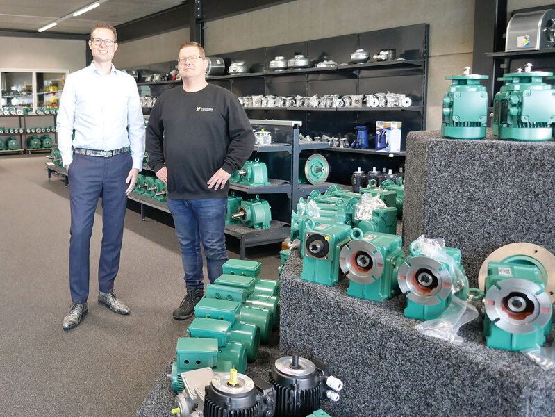 Verhagen Elektromotoren in Bladel is onderdeel van Verhagen Elektro Service BV en werd in 1987 opgericht, vertelt Robert Verhagen, samen met zijn broer Ron eigenaar van de holding. De andere tak van de BV bestaat uit een grote witgoedwinkel. In hetzelfde pand staan in een ruime hal naast assemblagelijnen en wikkelapparatuur voorraden elektromotoren en reductoren (tandwielkasten, red.) en ook onderdelen en materialen die nodig zijn voor het reviseren en het klantspecifiek maken van aandrijvingen. Want ook daar heeft het Bladelse familiebedrijf de vaardigheden voor in huis. In de aanpalende showroom zijn de schappen gevuld met producten in allerlei soorten en maten. De meeste groen, de kleur van veel Nidec Leroy-Somer-producten. ‘Ja, die kleur past een beetje bij ons’, zegt Robert Verhagen lachend.
