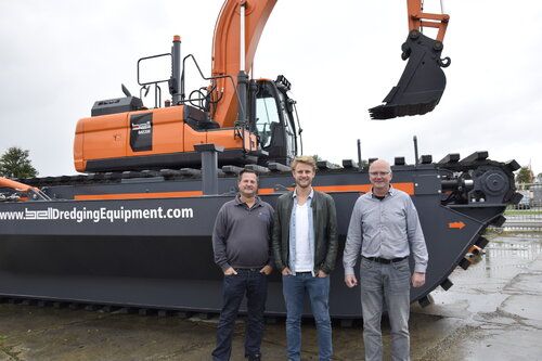 V.l.n.r. Johan Piek (PTS), Thijs van den Outenaar (Bell Dredging Equipment) en Teun van Breugel (Nidec Netherlands)