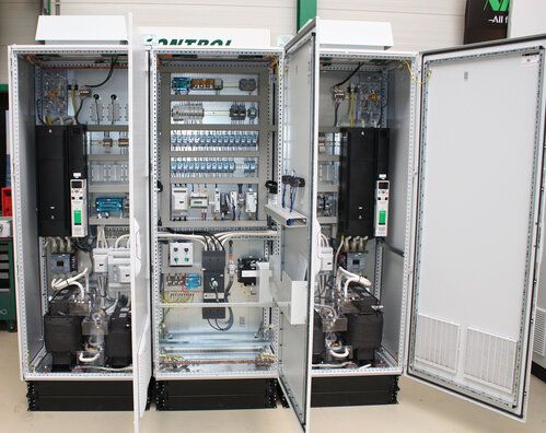 Een deel van de 128 kasten met Control Techniques Unidrive M regelaars die bij de ombouw van Rollenbaan 41 zijn geplaatst.