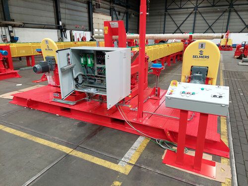 Selmers uit Beverwijk ontwikkelt complete proceslijnen waarop pijpen met diameters tot enkele meters worden ‘gehandled’, gereinigd en voorzien van verschillende beschermlagen. De pijpen zijn onder meer bedoeld voor het transport van producten uit de petrochemie, maar ook voor het ondergronds geleiden van bijvoorbeeld kabels. Het aanbrengen van deze coatings gebeurt met een extruder en luistert zeer nauw. Een opgave dus voor de besturingstechniek.